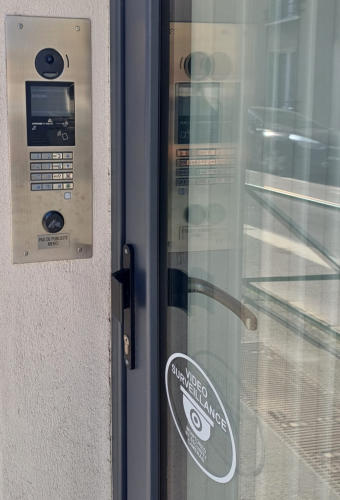 Le hall de l'immeuble est surveillé par une caméra de sécurité.