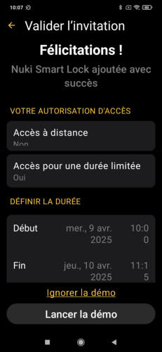 Une fois l'application téléchargée, vous devrez saisir le code d'invitation, dans l'application "" Nuki""